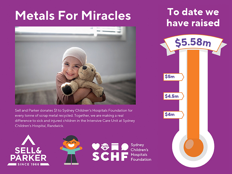 Our sponsorship began through the ’Metal for Miracles’ Campaign. For every tonne of scrap metal recycled, $1 was donated to the ICU.